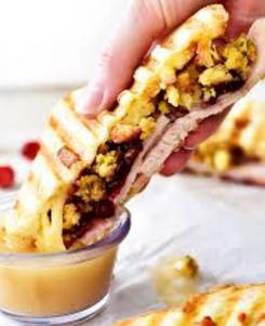 turkey, ham, egg, swiss cheese drizzled with maple syrup made on