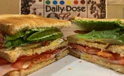 guacamole, bacon, tomato, baby spinach made on toasted thick-cut multigrain bread
