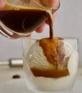 vanilla ice cream topped with espresso, whipped cream and drizzle of caramel - 4.99